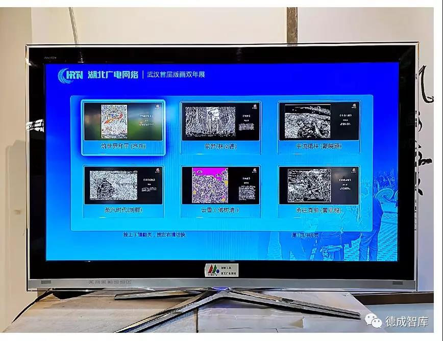 《武漢市首屆版畫藝術(shù)雙年展》首次實現(xiàn)了線下實體展館與線上電視藝術(shù)館結(jié)合的方式,電視上廣泛傳播,從此湖北的藝術(shù)推廣出現(xiàn)新生態(tài)局面,讓優(yōu)秀藝術(shù)作品永不落幕。全省的200多萬戶家庭,可以通過數(shù)字電視觀賞到展館內(nèi)展出的藝術(shù)作品。2020年湖北數(shù)字電視可望實現(xiàn)300萬電視家庭藝術(shù)展的收視率。這是湖北省藝術(shù)作品展里首次實地展和電視同步展出的展覽,創(chuàng)造了藝術(shù)品傳播的一個新的里程碑!一個新時期的烙??!藝術(shù)家的作品得以廣泛傳播!藝術(shù)以親民的姿態(tài)走進(jìn)千家萬戶!