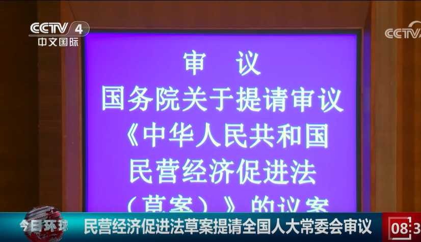 [今日環(huán)球]民營(yíng)經(jīng)濟(jì)促進(jìn)法草案提請(qǐng)全國(guó)人大常委會(huì)審議 https://tv.cctv.com/2024/12/22/VIDELAefiiWgLMla75BOTTKE241222.shtml