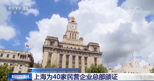 上海為40家民營企業(yè)總部頒證。